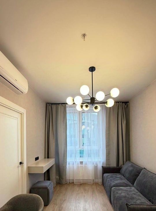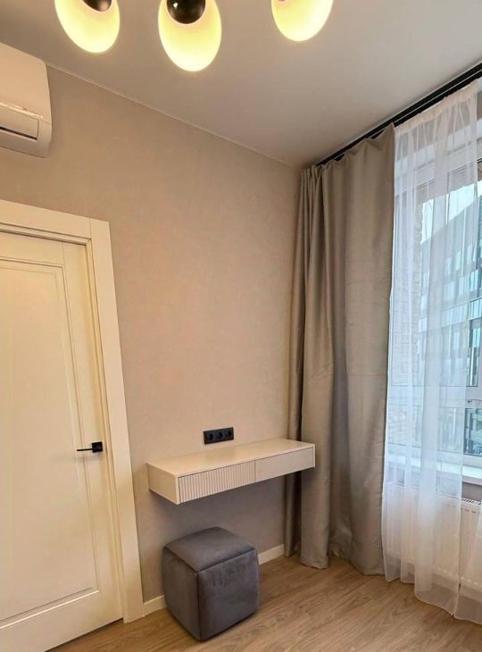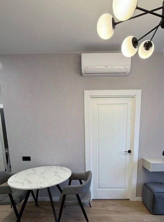 В квартире сделан дизайнерский ремонт, который создаёт атмосферу уюта и комфорта. В комнате и на кухне есть вся необходимая мебель. Для вашего удобства установлены кондиционер, холодильник, посудомоечная машина, телевизор и стиральная машина. Санузел совмещённый и оборудован душевой кабиной. Окна выходят во двор, поэтому в квартире тихо и спокойно.