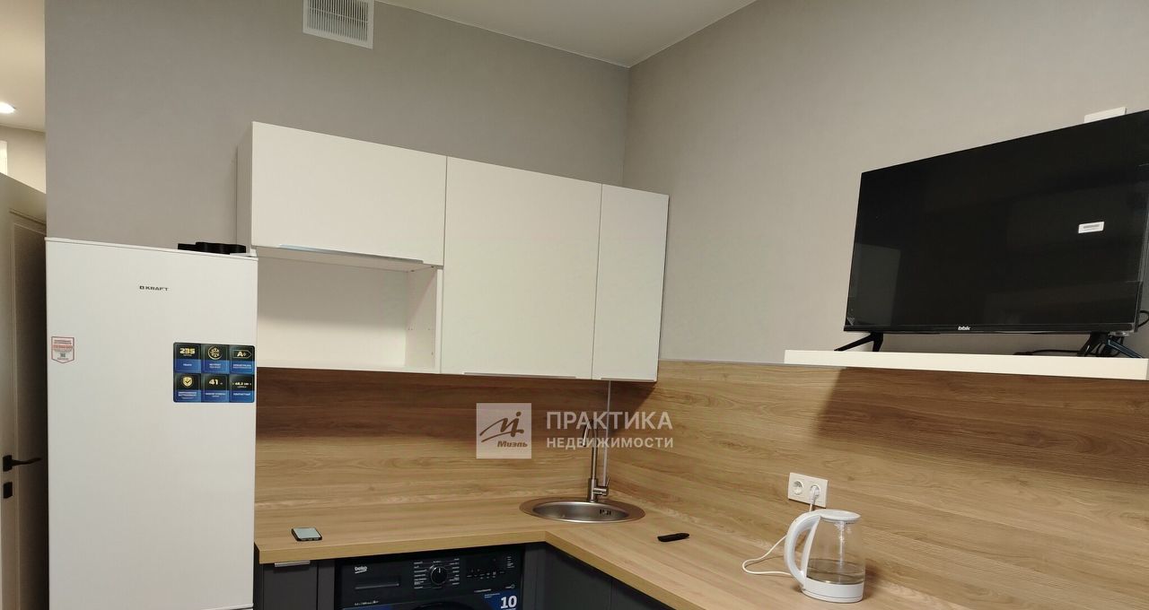 Есть всё для проживания: кухонный гарнитур, холодильник, ст/машина, спальное место ,кондиционер. Совмещённый санузел обеспечивает удобство и функциональность.