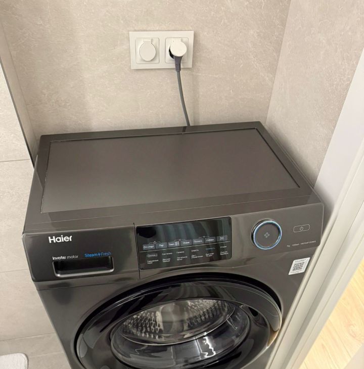 В квартире есть всё необходимое для комфортного проживания: кондиционер, холодильник, посудомоечная машина, телевизор и стиральная машина.