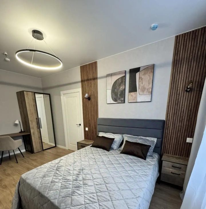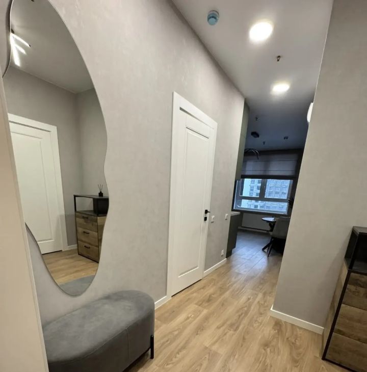 Сдаётся светлая квартира на длительный срок. Без комиссии. Дом монолитный, построен в 2025 году. Просторная кухня площадью 8 м² оснащена современной техникой: холодильник, посудомоечная машина, микроволновая печь. В квартире дизайнерский ремонт, установлены шкафы и гардеробная. В комнате уютная кровать и вместительный шкаф. Санузел совмещённый, оборудован ванной и стиральной машиной. В прихожей — удобный стул и зеркало. Дом расположен на 18 этаже из 23, есть два пассажирских и один грузовой лифты. Во дворе закрытая территория с открытой парковкой за шлагбаумом. Рядом спортивная площадка. Курение и проживание с детьми или животными не допускается.