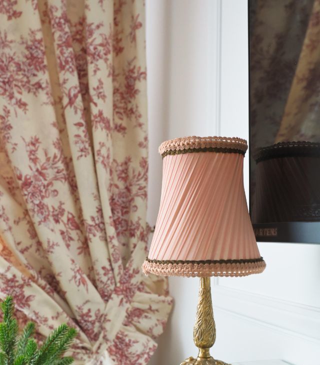 - Настольные лампы с розовыми тканевыми абажурами