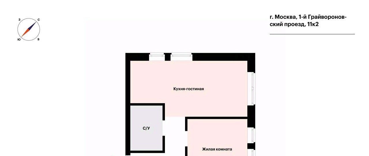 1-к кв. Москва 1-й Грайвороновский проезд, 11к2 (35.0 м²)