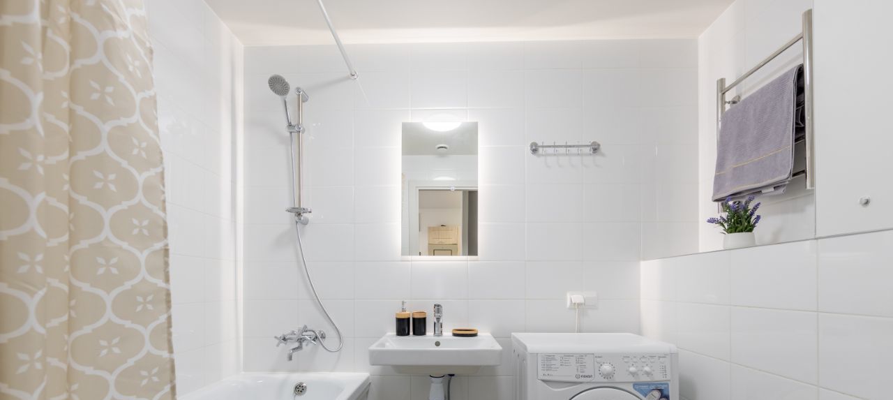 Квартира оборудованна всем необходимым для комфортной жизни: кухонный гарнитур c бытовой техникой (холодильник, духовой шкаф, варочная индукционная панель, микроволновая печь, чайник), в каждой комнате установлен кондиционер, стиральная и сушильная машины, телевизор, кровать и диван, в спальне вместительный шкаф-купе. Также есть необходимые спальные принадлежности, текстиль и посуда.