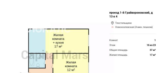 1-к кв. Москва 1-й Грайвороновский проезд, 13к4 (37.0 м²)