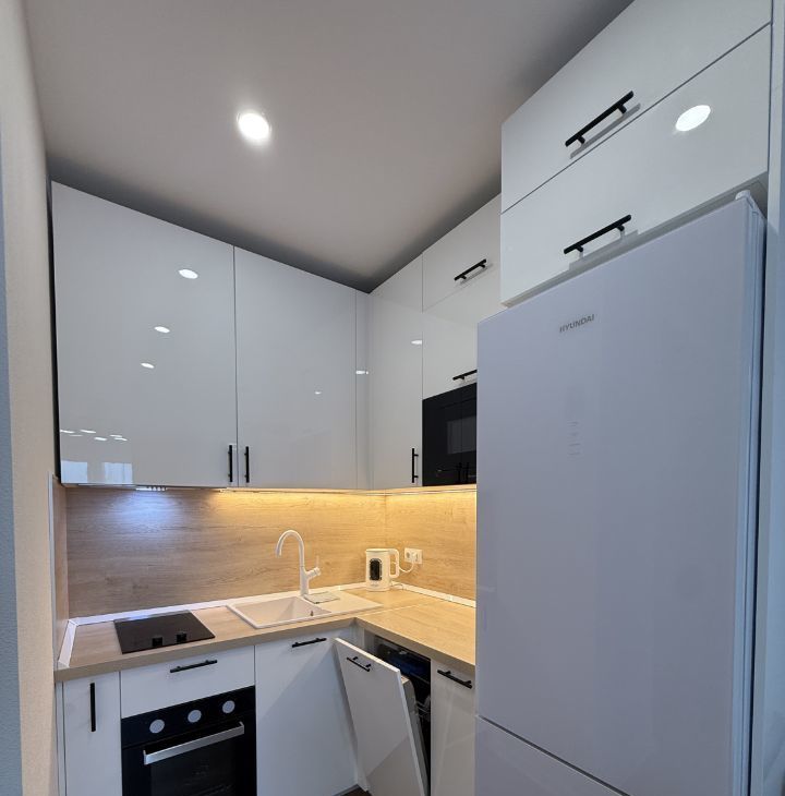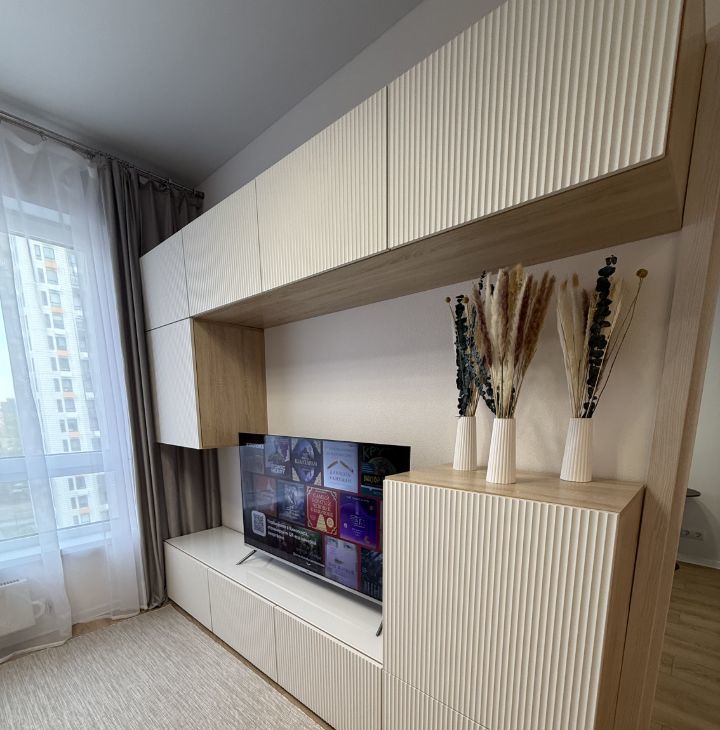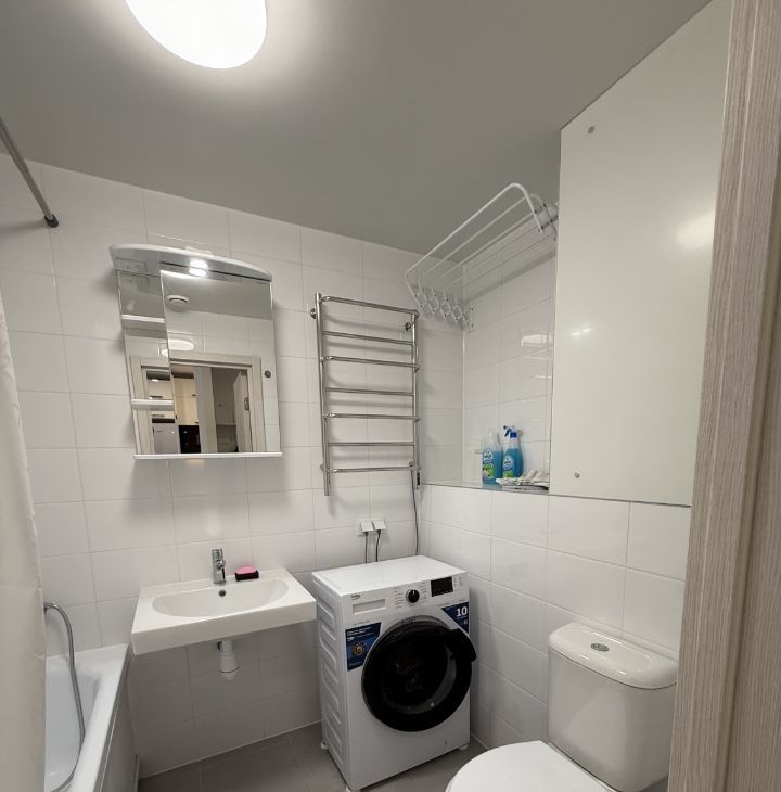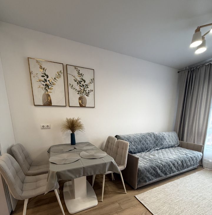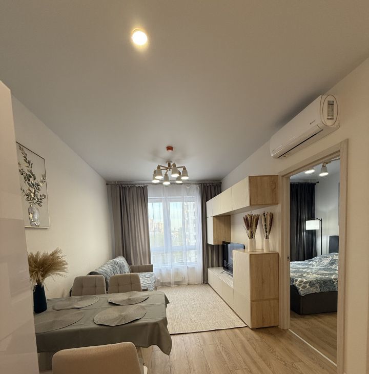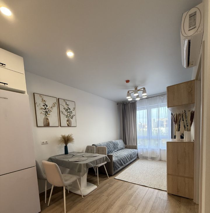 Квартира радует свежим евроремонтом и продуманной обстановкой. В комнате и на кухне есть вся необходимая мебель, обеспечивающая комфортное проживание. Из техники в вашем распоряжении кондиционер, холодильник, телевизор, варочная панель, духовой шкаф, а также посудомоечная и стиральная машины. В ванной комнате установлена ванна, что делает ежедневные ритуалы еще более приятными. Окна выходят на улицу, поэтому в квартире всегда светло и просторно.
