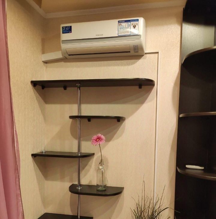В квартире есть косметический ремонт, что создает комфортную атмосферу для проживания. Комната оборудована необходимой мебелью (спальное место-диван), а на кухне есть все для приготовления пищи. Из техники установлены кондиционер, холодильник и стиральная машина, поэтому можно сразу заезжать и жить. Санузел раздельный. Ванная комната оборудована ванной. Из окон открывается вид на спокойный двор, а балкон (не застеклен) станет отличным местом для отдыха.