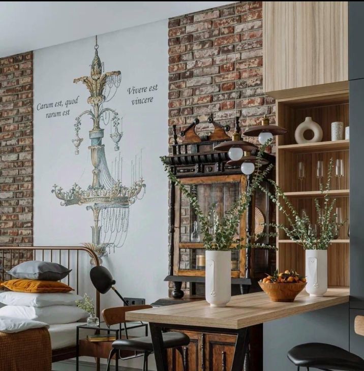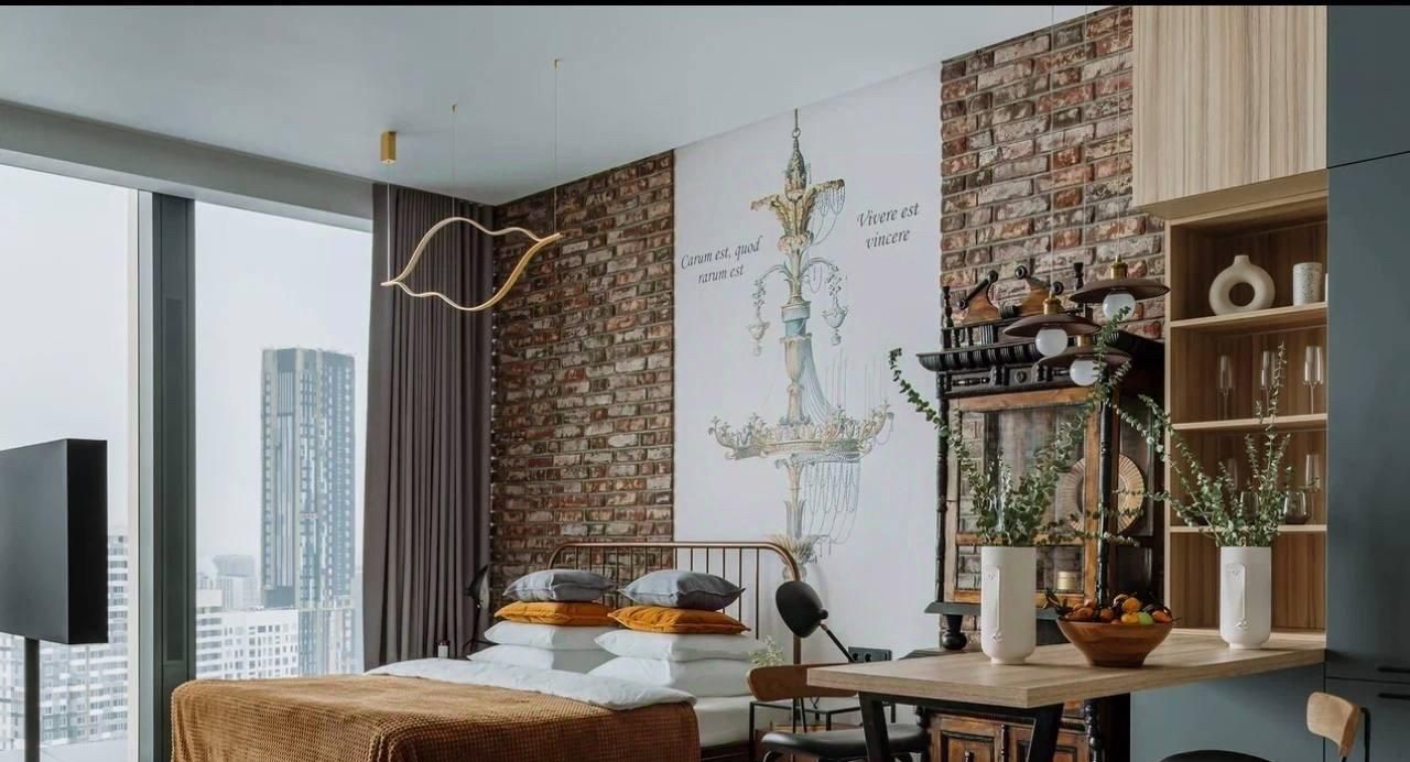 Студия с дизайнерским ремонтом в стиле мягкий лофт