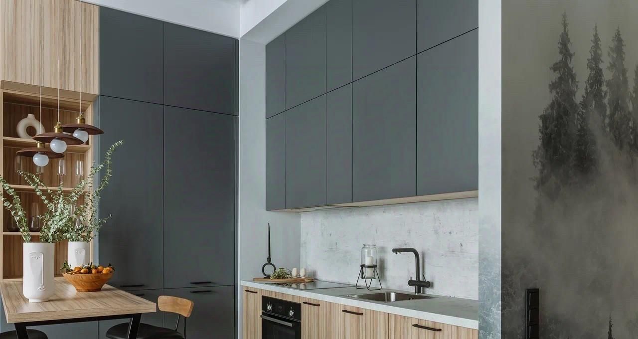 кухня (духовой шкаф, варочная поверхность, встроенный фильтр для питьевой воды , 2-х камерный холодильник, посуда, столовые приборы)