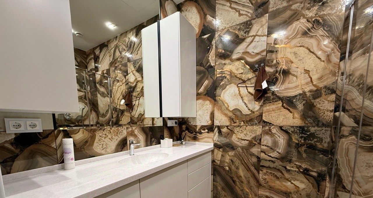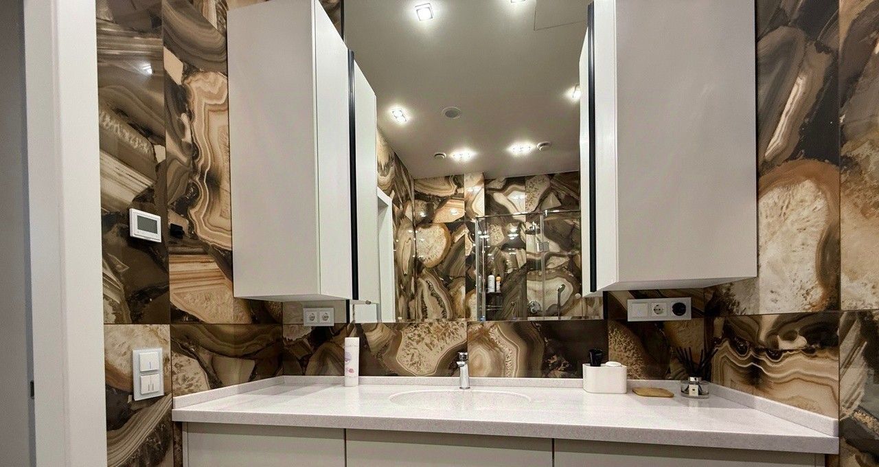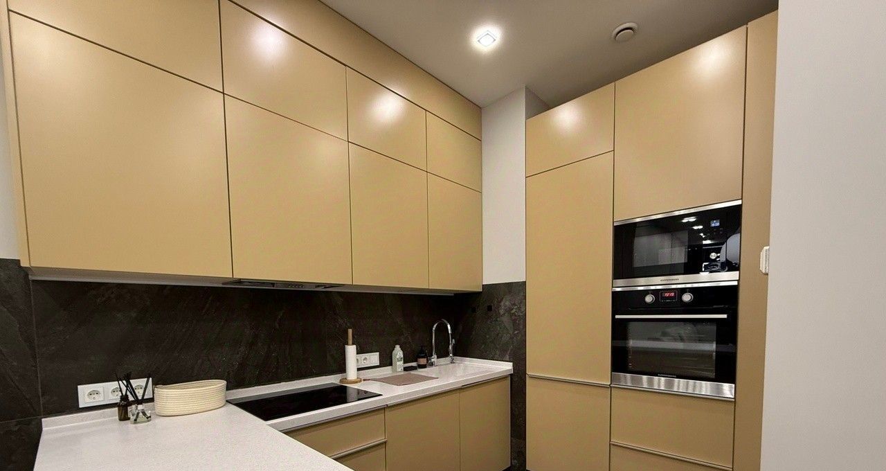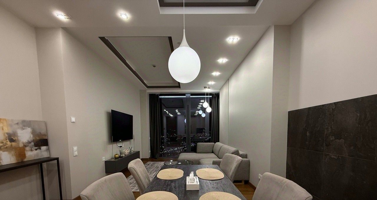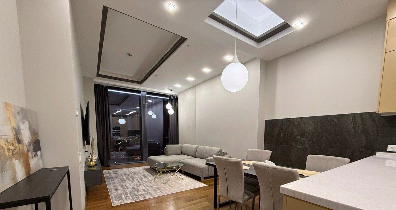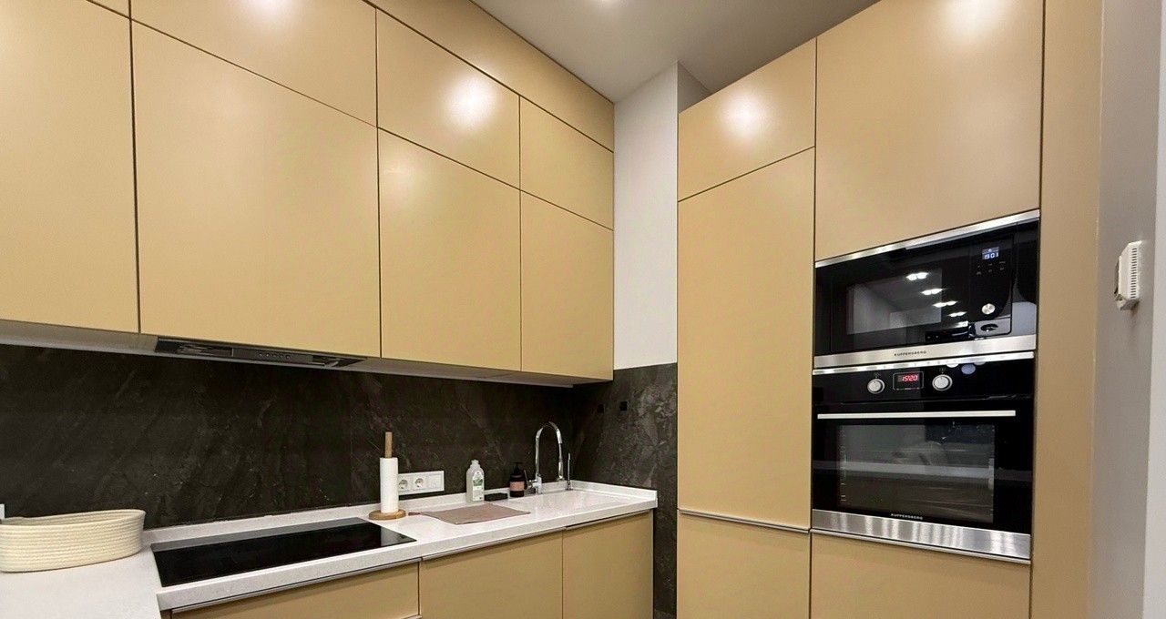 Квартира выполнена в дизайнерском стиле, что придаёт ей уникальный и современный облик. Внутри есть всё необходимое для комфортного проживания: мебель на кухне и в комнате, а также полный комплект бытовой техники. Кондиционер, холодильник, посудомоечная и стиральная машины, телевизор — всё это в вашем распоряжении.