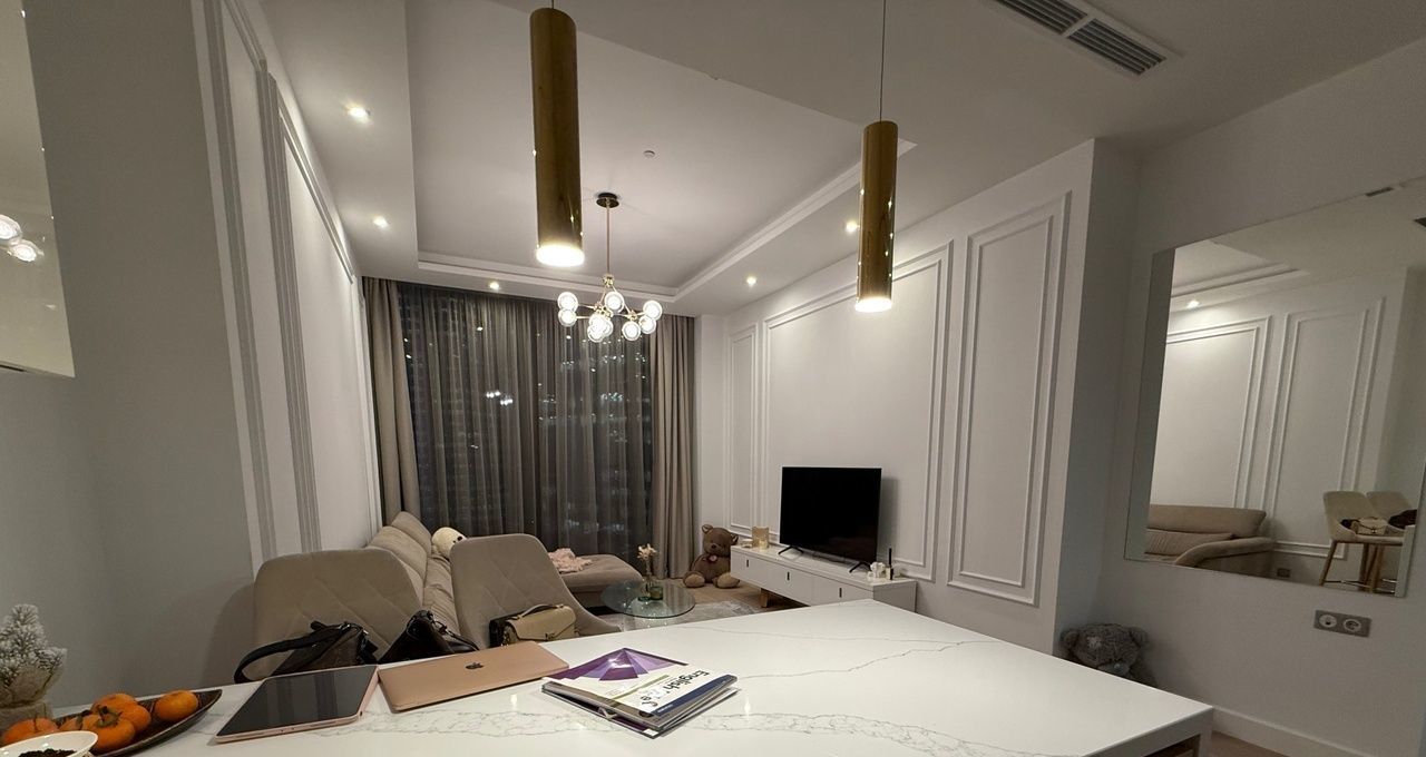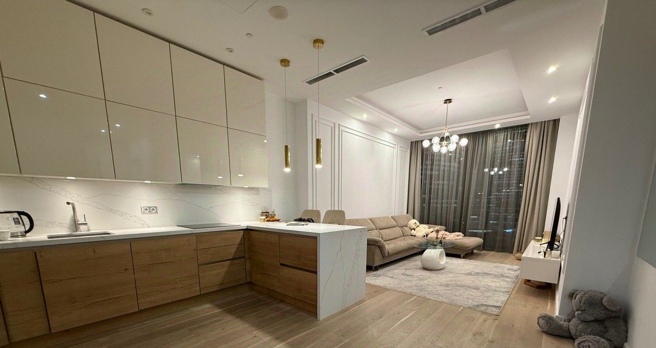 Дизайнерское пространство: Интерьер, созданный для тех, кто ценит эстетику и качество. Квартира полностью укомплектована мебелью и техникой премиального уровня (кондиционер, ПММ, стиральная машина, ТВ).