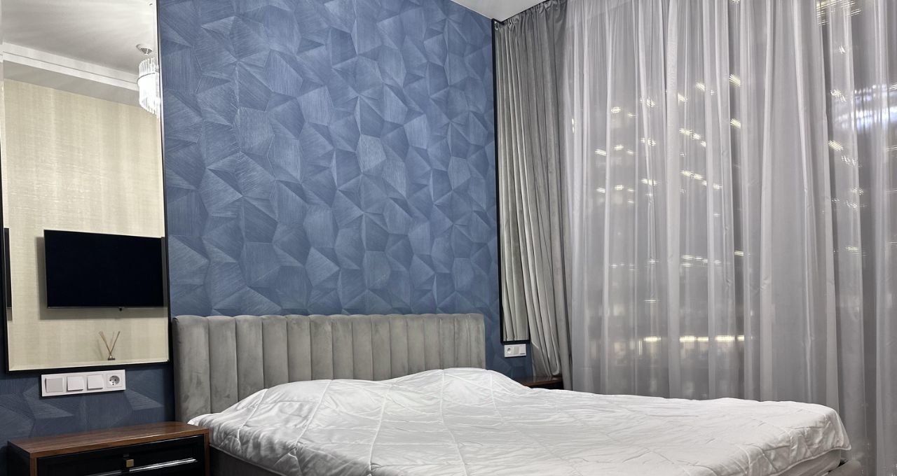 В квартире выполнен качественный евроремонт. Просторная кухня площадью 25 кв. м оснащена необходимой техникой: холодильником, посудомоечной машиной и стиральной машиной. Для вашего удобства в комнате и на кухне есть мебель, а в ванной комнате установлена душевая кабина. Окна выходят на улицу, поэтому в апартаментах всегда светло и уютно. В наличии интернет, что позволит вам оставаться на связи в любое время.