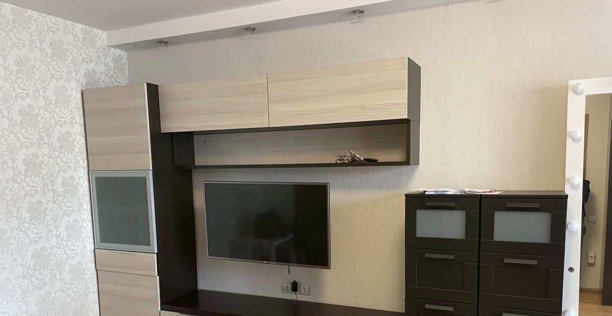 Раскладной диван плюс раскладное кресло, вместительный шкаф в комнате и шкаф-купе в прихожей. Просторная застекленная лоджия с окнами в тихий двор.