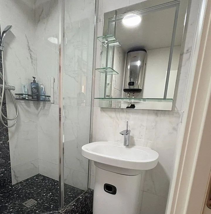 В квартире есть всё необходимое для комфортного проживания. Просторная кухня оборудована современной мебелью и техникой: холодильником, посудомоечной машиной и стиральной машиной. В комнате также имеется мебель и кондиционер для вашего удобства. Санузел совмещённый, в нём установлены ванна и душевая кабина. Из окон открывается приятный вид во двор, где всегда тихо и спокойно. Есть балкон для утреннего кофе или вечернего отдыха.