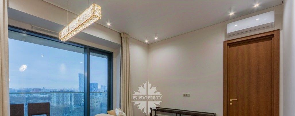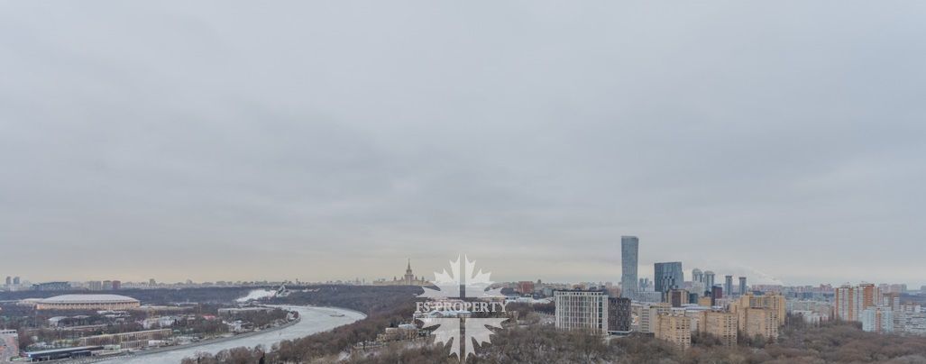 Это самая видовая квартира в комплексе: окна выходят на восток на набережную реки, здание МГУ им. Ломоносова и парк Воробьёвы горы