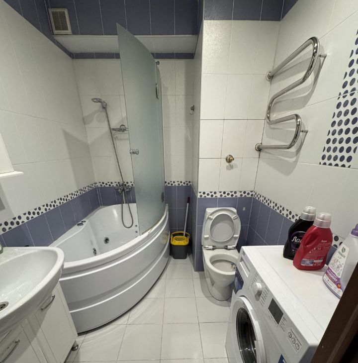 В квартире сделан косметический ремонт. Просторная жилая площадь в 20 кв. м и кухня в 10 кв. м оборудованы всей необходимой мебелью. Для вашего комфорта есть холодильник и стиральная машина и гардероб. В ванной комнате установлена ванна с функцией джакузи и подсветкой. Из окна открывается вид во двор.