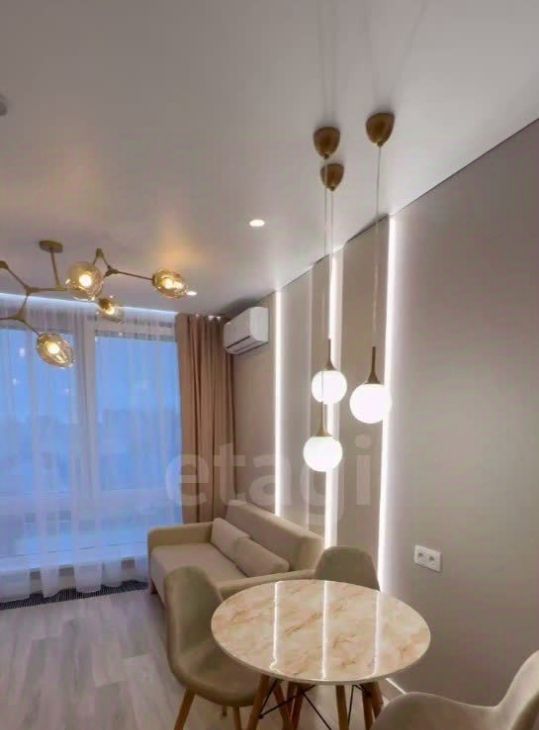 Однокомнатная на высоком этаже в ЖК "Сити-комплекс Мята" предлагает панорамные виды и максимальное естественное освещение. Пространство площадью 33,5 кв. метров организовано с учетом эргономики: здесь рационально размещены зона отдыха, полноценное рабочее место и кухонный блок со встроенной техникой .