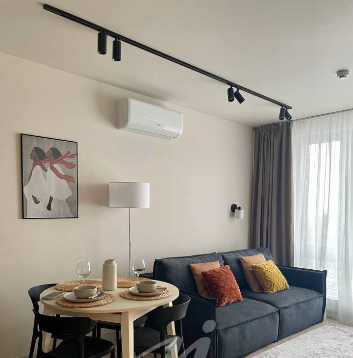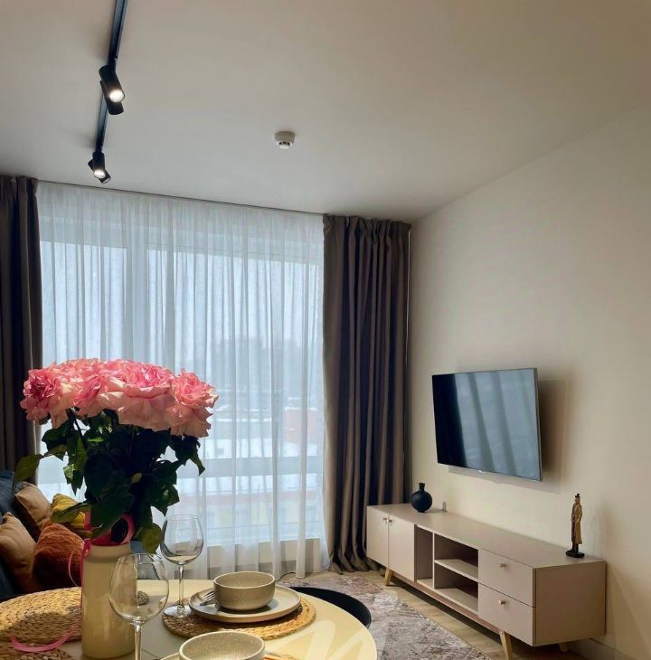 Арт. 128657031 Сдается новая светлая красивая квартира с дизайнерским ремонтом в ЖК "Сити-комплекс Мята". По планировке квартира состоит из просторной кухни-гостиной и уютной спальни. В квартире современная новая мебель, вся новая бытовая техника, включая мелкую бытовую технику и посудомоечную машину, телевизор, два кондиционера. Санузел совмещенный с душевой кабиной.
