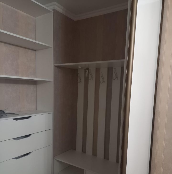 В квартире есть всё для комфортного проживания. Есть большая гардеробная комната, застекленный балкон.