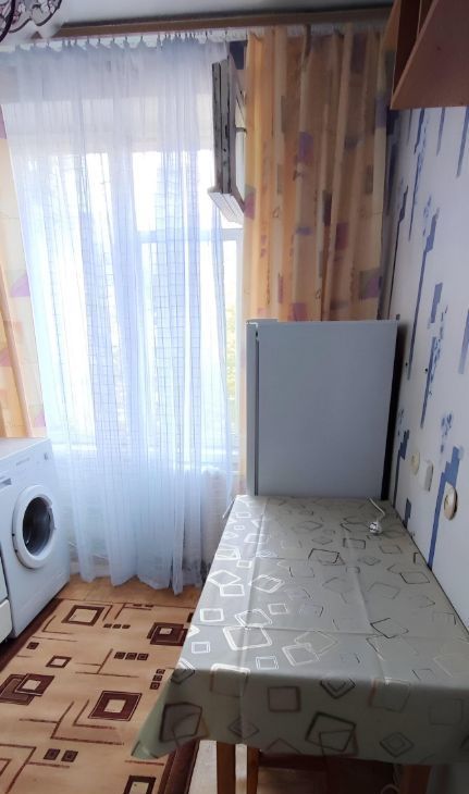 Квартира имеет косметический ремонт, что создаёт приятное впечатление и уютную атмосферу. Окна выходят во двор, поэтому в квартире тихо и спокойно. В комнате и на кухне есть вся необходимая мебель. К вашим услугам холодильник и стиральная машина. Санузел совмещённый, с ванной. Есть балкон, где можно насладиться свежим воздухом.
