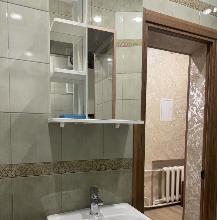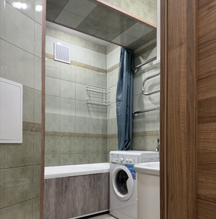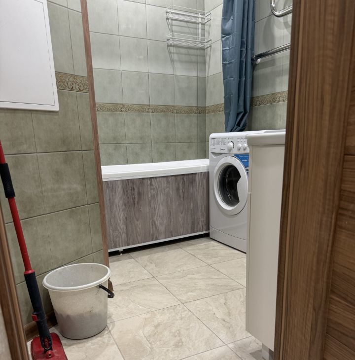 В квартире сделан качественный евроремонт. Обстановка современная и удобная: в комнате и на кухне есть вся необходимая мебель. Для вашего комфорта установлены холодильник и стиральная машина. Санузел совмещён, оборудован ванной. Окна выходят во двор, поэтому в квартире тихо и спокойно.
