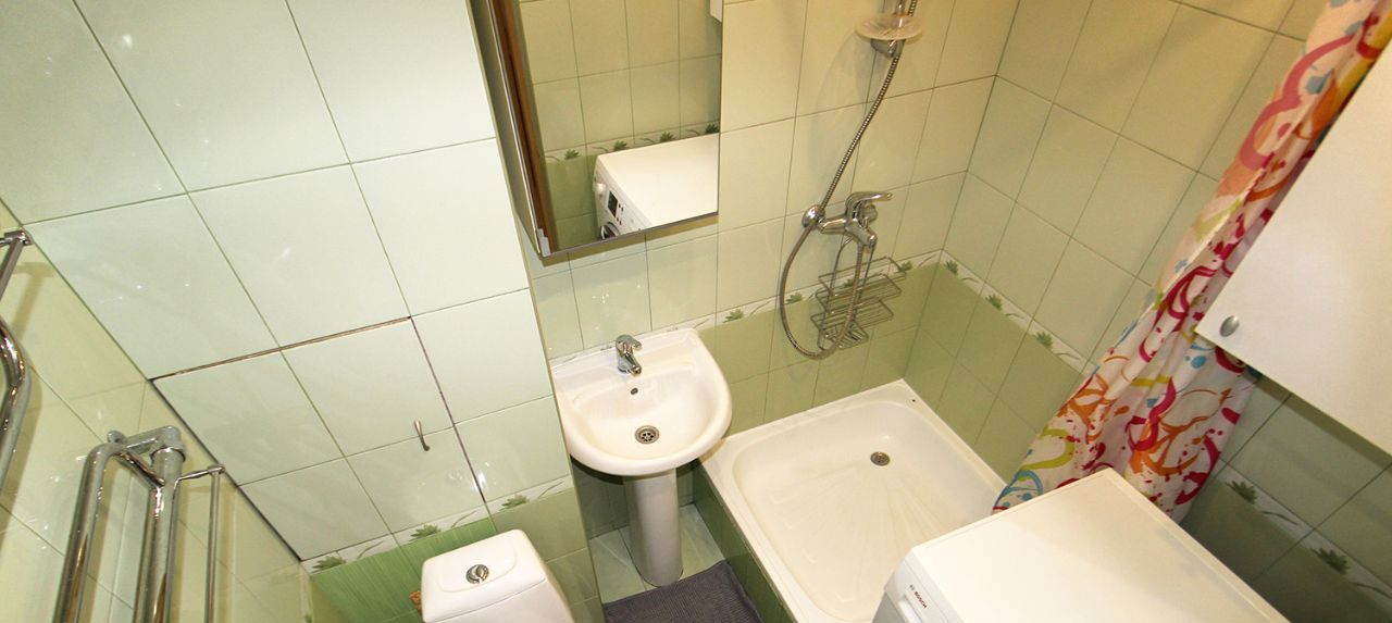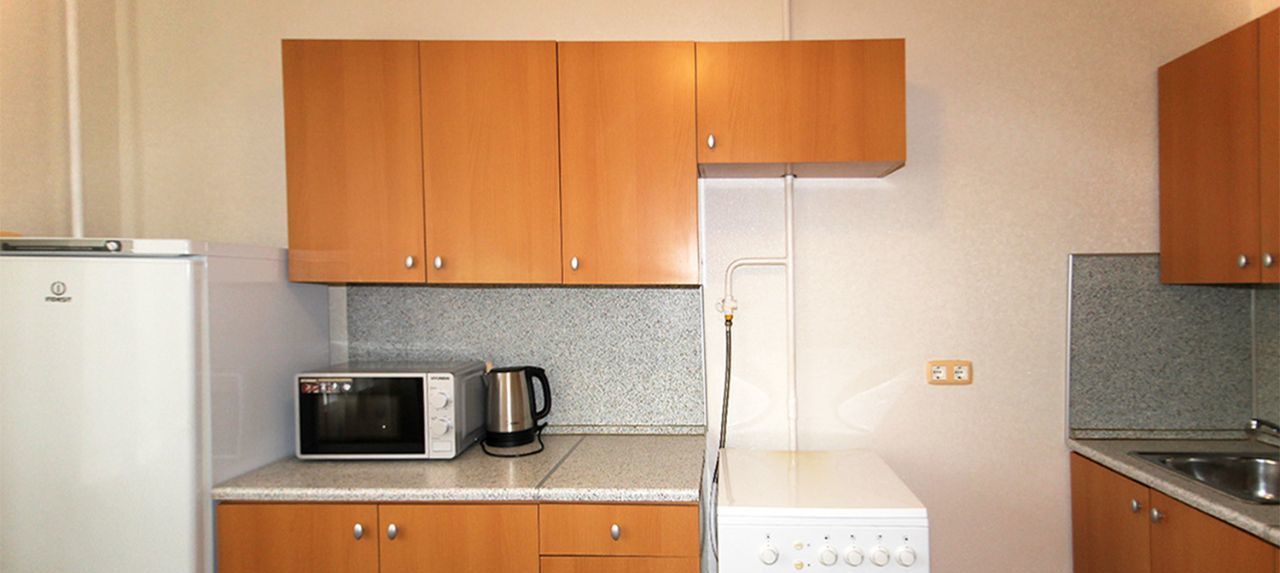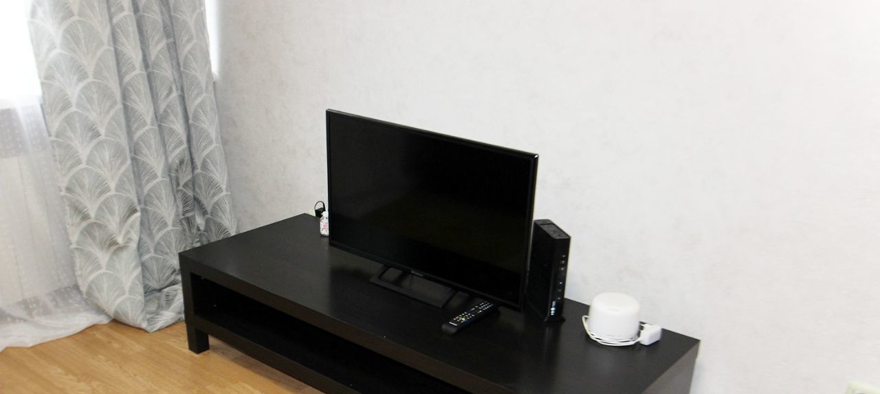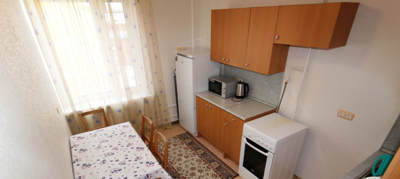 В комнате двуспальная кровать, есть дополнительный удобный угловой диван. Шкаф трёхстворчатый для хранения вещей. На кухне холодильник, газовая плита с духовкой, микроволновка, стиральная машина, Wi-Fi и телевизор с множеством каналов. Санузел совмещённый, душевая кабина.