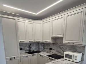 В квартире есть все для комфортного проживания: современная мебель на кухне и в комнате, техника — холодильник, стиральная и посудомоечная машины, телевизор и кондиционер. Ванная комната оборудована ванной, санузел совмещенный. Окна выходят во двор, поэтому в квартире тихо и спокойно.