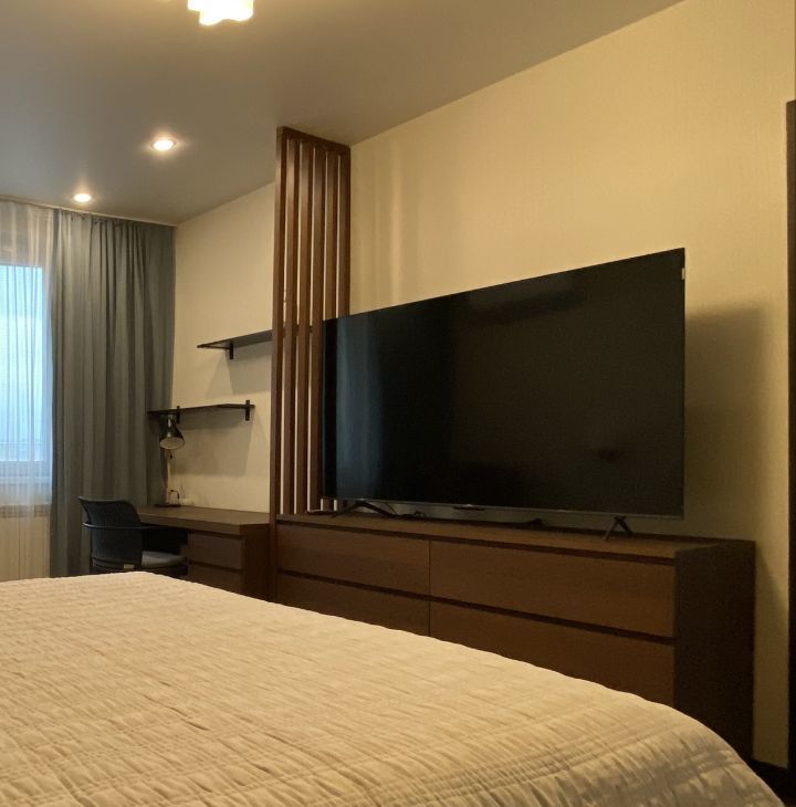 Квартира с качественным ремонтом, полностью готова к проживанию. В комнате и на кухне есть вся необходимая мебель. Кухня оборудована современной техникой: холодильником, посудомоечной и стиральной машинами, микроволновой печкой. В ванной комнате установлена ванна, что позволяет расслабиться после рабочего дня. Планировка квартиры продумана до мелочей, есть балкон, где можно наслаждаться утренним кофе.