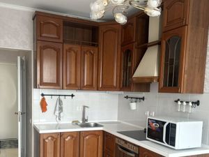 В квартире есть все необходимое: кухня с духовым шкафом, варочной панелью и вытяжкой, холодильник.