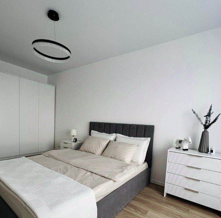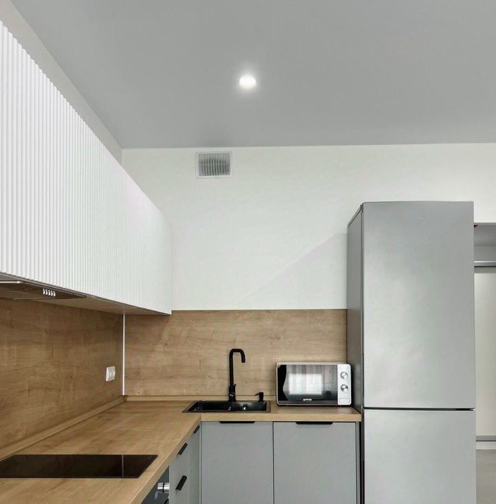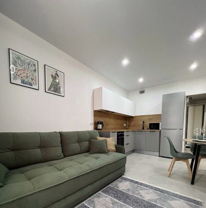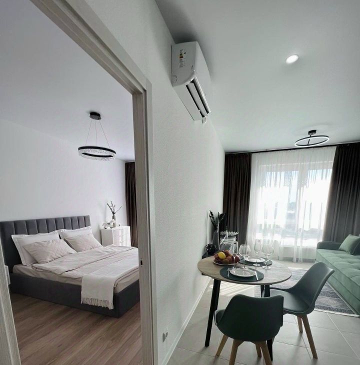 Квартира полностью меблирована: на кухне и в комнате есть вся необходимая мебель, а также современная техника — кондиционер, холодильник, посудомоечная и стиральная машины, телевизор. Ванная комната оборудована ванной. Интерьер выполнен в светлых и приятных тонах, что создаёт атмосферу уюта и спокойствия. Скоростной интернет позволит оставаться на связи и работать из дома без перебоев.