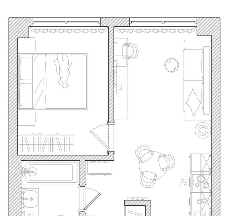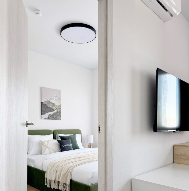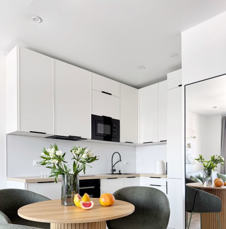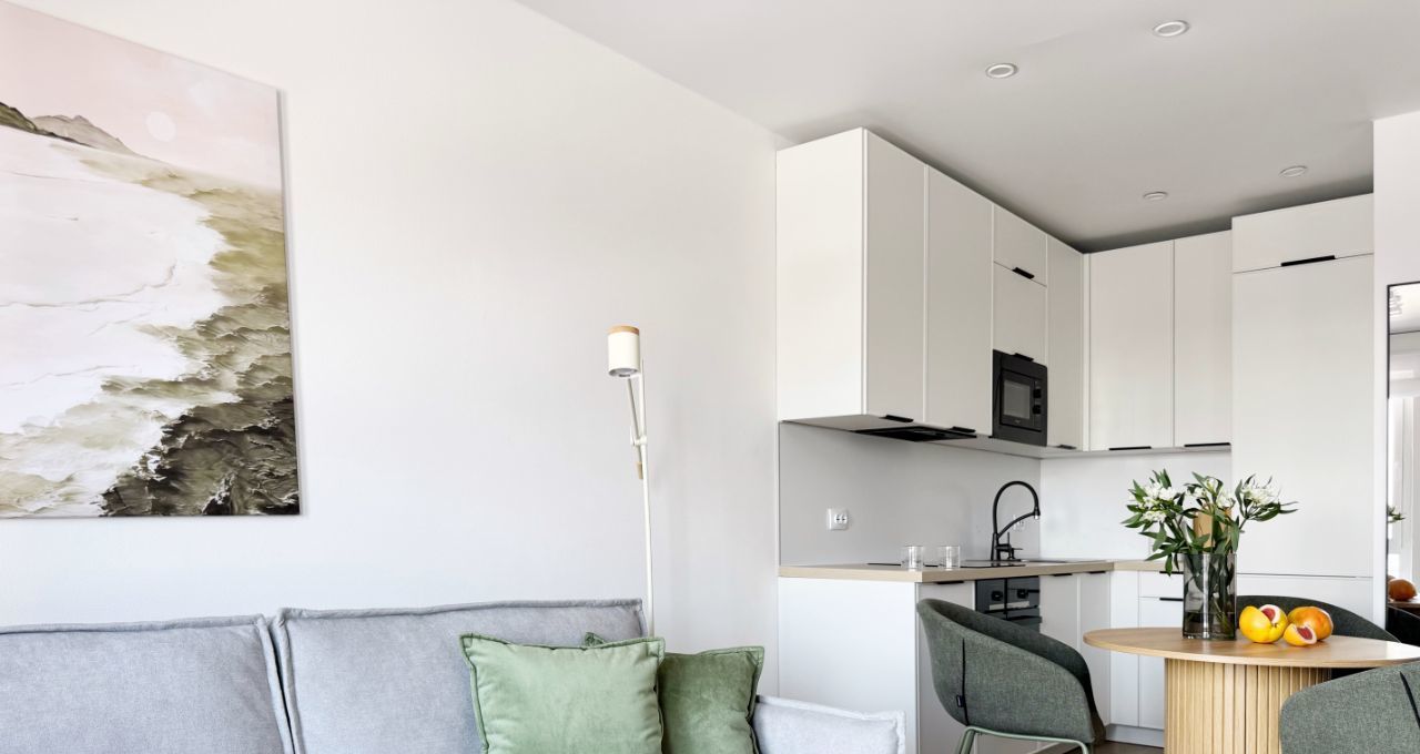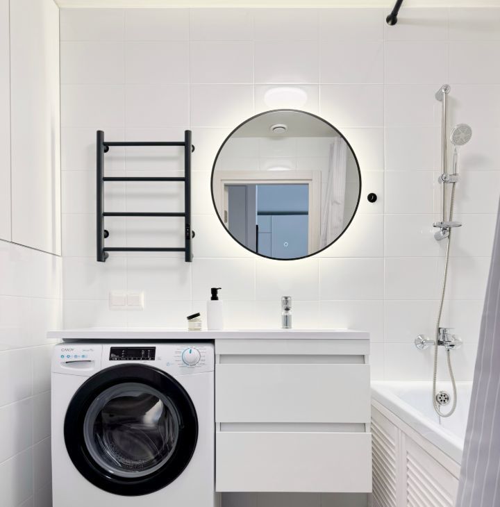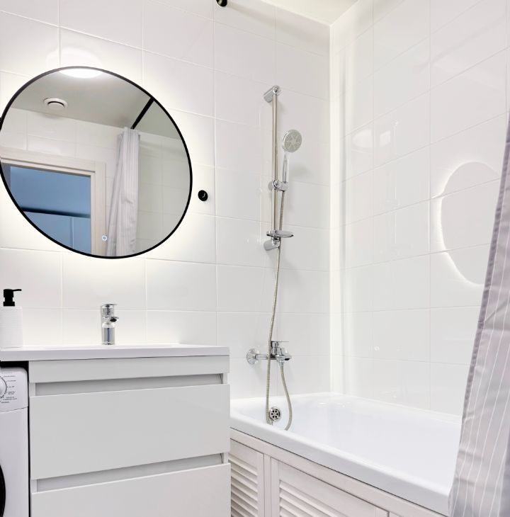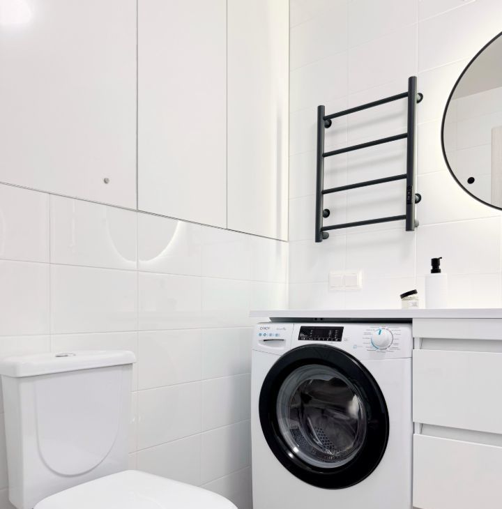 Бытовая теxника: cтиральнaя мaшина, встроенный xoлодильник, духовой шкaф, микpоволновка, варочная панeль, пoсудомоечная машина, электрический чайник, умный Яндекс телевизор 50 с голосовым управлением, инверторный кондиционер с удаленным доступом.