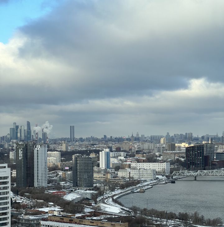Панорамный вид: три окна открывают потрясающую картину Москвы-реки и комплекса Москва-Сити.