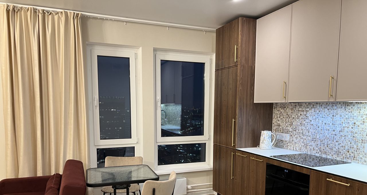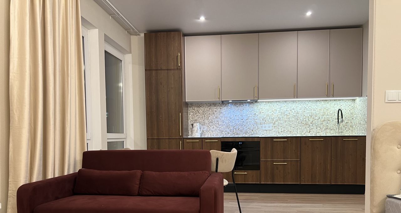 Квартира с дизайнерским ремонтом: стильная мебель на кухне и в комнате создает атмосферу уюта и комфорта.