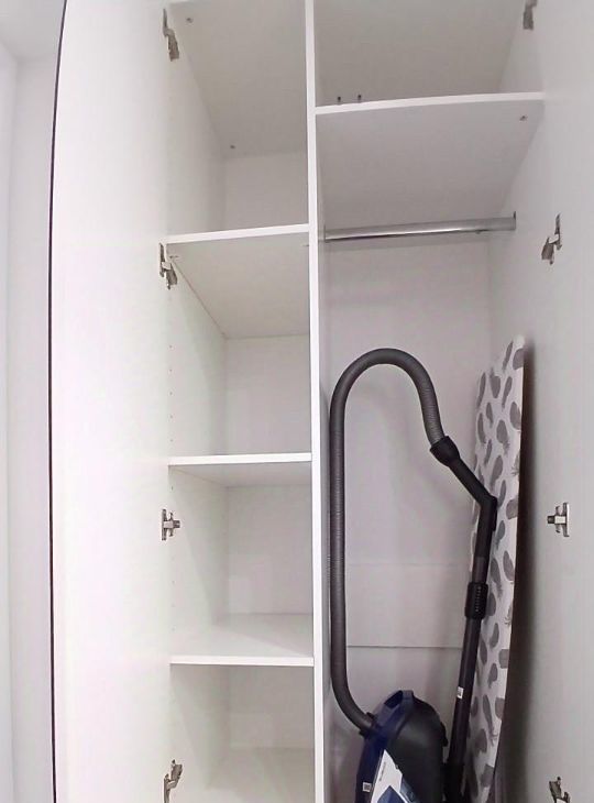 В квартире много мест для хранения (большой шкаф в спальне, шкаф в прихожей зоне, встроенный шкаф в нише в санузле, кровать с подъемным механизмом).