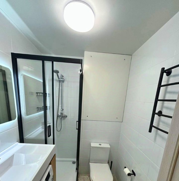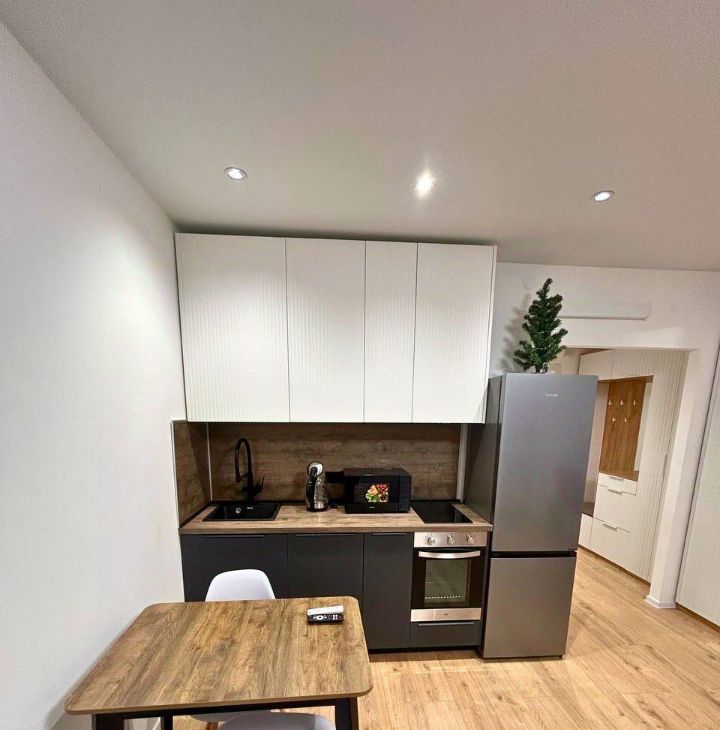 Оснащена следующей техникой: Холодильник,Варочная панель, Духовой шкаф, Микроволновая печь, Посудомоечная машина, Система фильтрации воды, Стиральная машина, Телевизор с SmartTV, WI-fi роутер.
