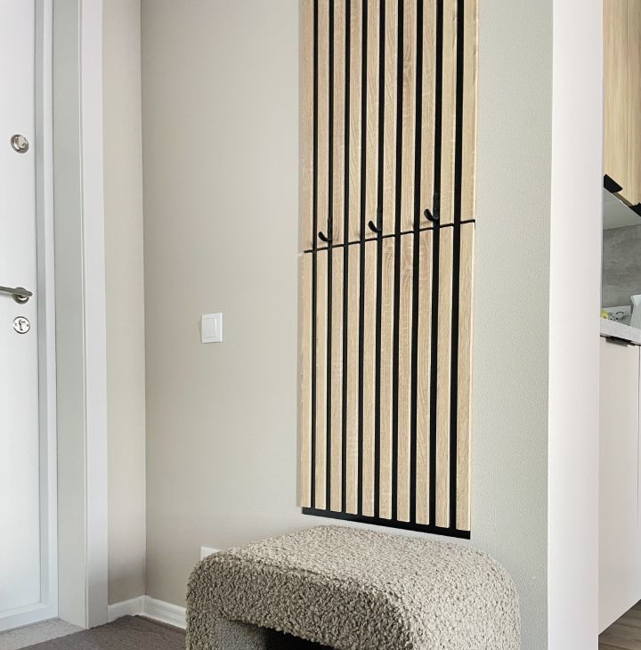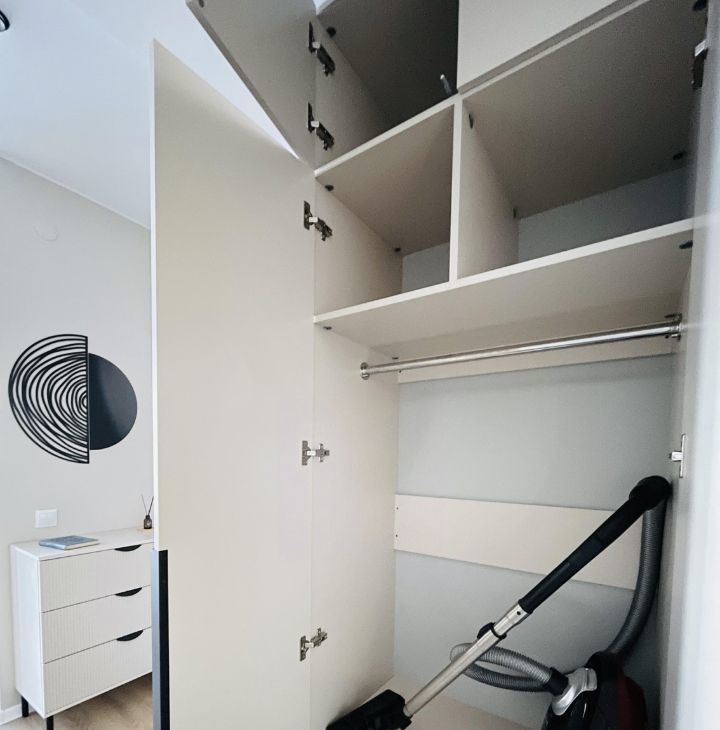 Системы хранения: Просторные гардеробные шкафы в спальне и прихожей, а также комод и тумба в гостиной.