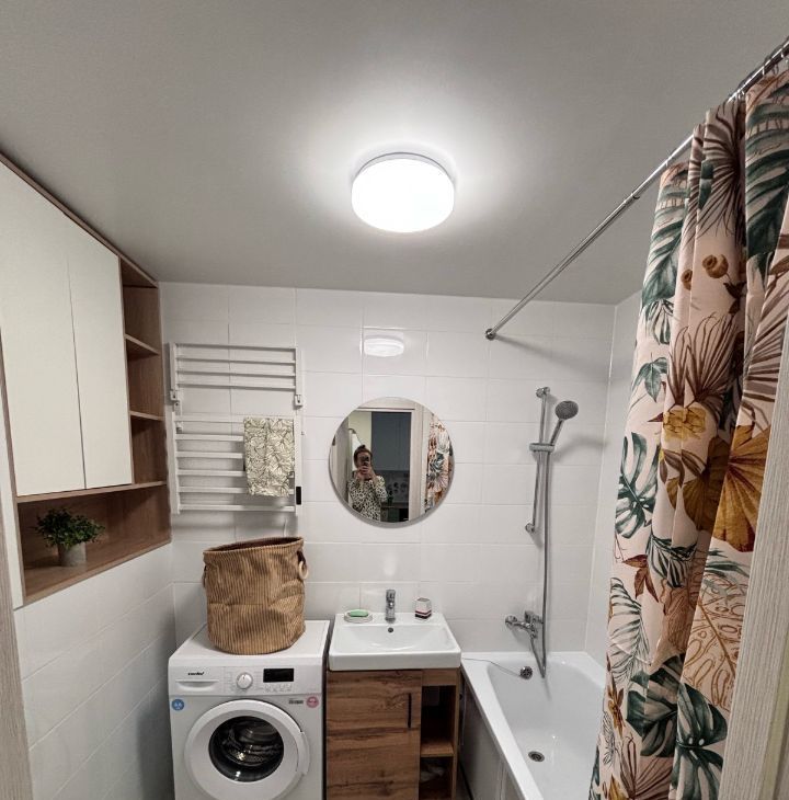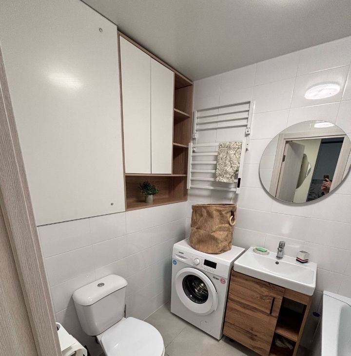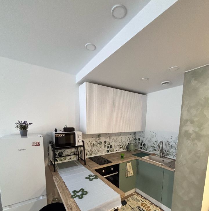 Спальных мест- 4. Раздвижной журнальный стол, барная стойка, духовой шкаф, индукционная панель, стиральная машина, смарт тв. Вид из окна- во двор.
