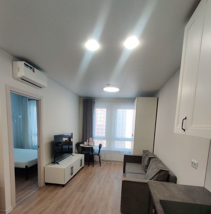 Однокомнатная квартира (евродвушка), спальня 10м2, кухня-гостиная 16м2, общей площадью 31,9 кв.м., в новом доме, сдан в 2025 г. В квартире никто не жил. Вся мебель и техника новые. Есть стиральная машина, посудомойка, холодильник, кондиционер, смарт телевизор, проведен интернет. Сдается на длительный срок, возможность разбить залог на 2 месяца.