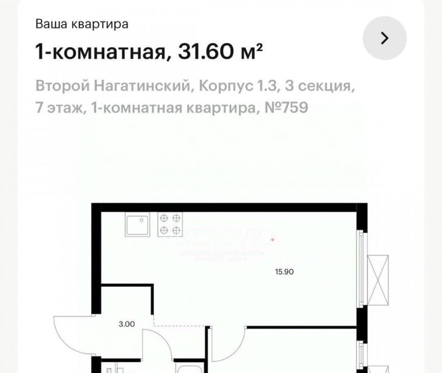1-к кв. Москва 2-й Нагатинский проезд, 6к1 (32.0 м²)