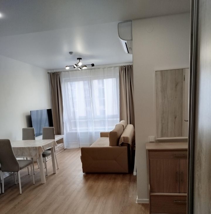 Квартира светлая, расположена на высоком этаже, откуда открывается панорамный вид. Планировка состоит из уютной изолированной спальни, кухни-гостиной и совмещенного санузла. Квартира оборудована кондиционерами, новой мебелью и техникой для комфортного проживания. Сдается от собственника, агентов просьба не беспокоить.