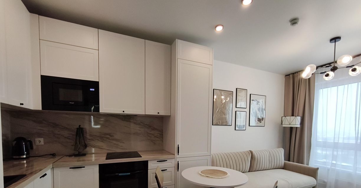 Квартира полностью меблирована и укомплектована всем необходимым, и готова к проживанию, для тех кто ценит комфорт. Не потребуется ничего докупать, все уже есть, постельное белье, одеяла ,подушки, полотенца, плед, гладильная доска, сушилка, вешалки, посуда, и много всего необходимого. На кухне и в комнате предусмотрена вся необходимая мебель, много мест хранения. Техника вся новая и качественная, включает в себя, встроенный холодильник с морозильной камерой , встроенная микроволновая печь, кондиционер, электрическая плита, духовой шкаф, чайник, холодильник, посудомоечную и стиральную машины, а также телевизор, поэтому вы сможете сразу же пользоваться всеми удобствами. Ванная комната оборудована ванной, а также местами хранения что особенно приятно после долгого рабочего дня.