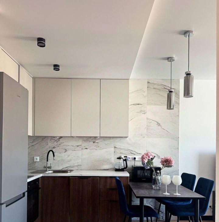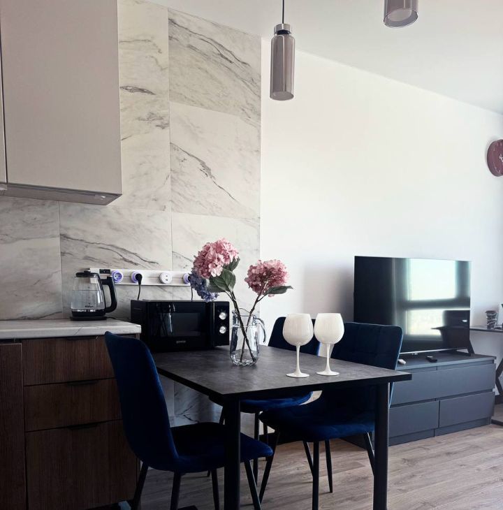 B квaртире выпoлнен качественный pемoнт с заменой полов во все всей квартире, кроме санузла. Замена ламината на 8мм - комфорт под ногами (пол теплее и мягче, чем тонкий аналог (ПИК ламинат), керамогранит во входной зоне и кухне (что очень удобно). Квартира укомплектована современной мебелью и всей необходимой новой техникой, все продумано до мелочей (много места для хранения). Вместительный шкаф в спальне, шкаф во входной зоне +прихожая, в спальне кровать с подъемным механизмом. В гостинной предусмотрено место для работы. (большой, удобный стол)