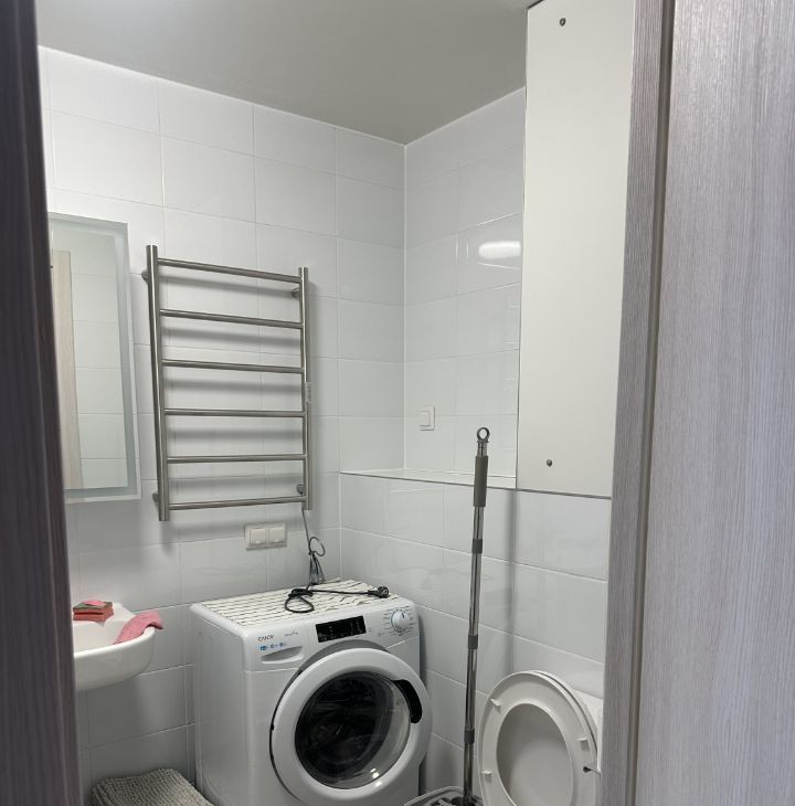 Санузел совмещенный со стиральной машиной с сушкой. Ванна.