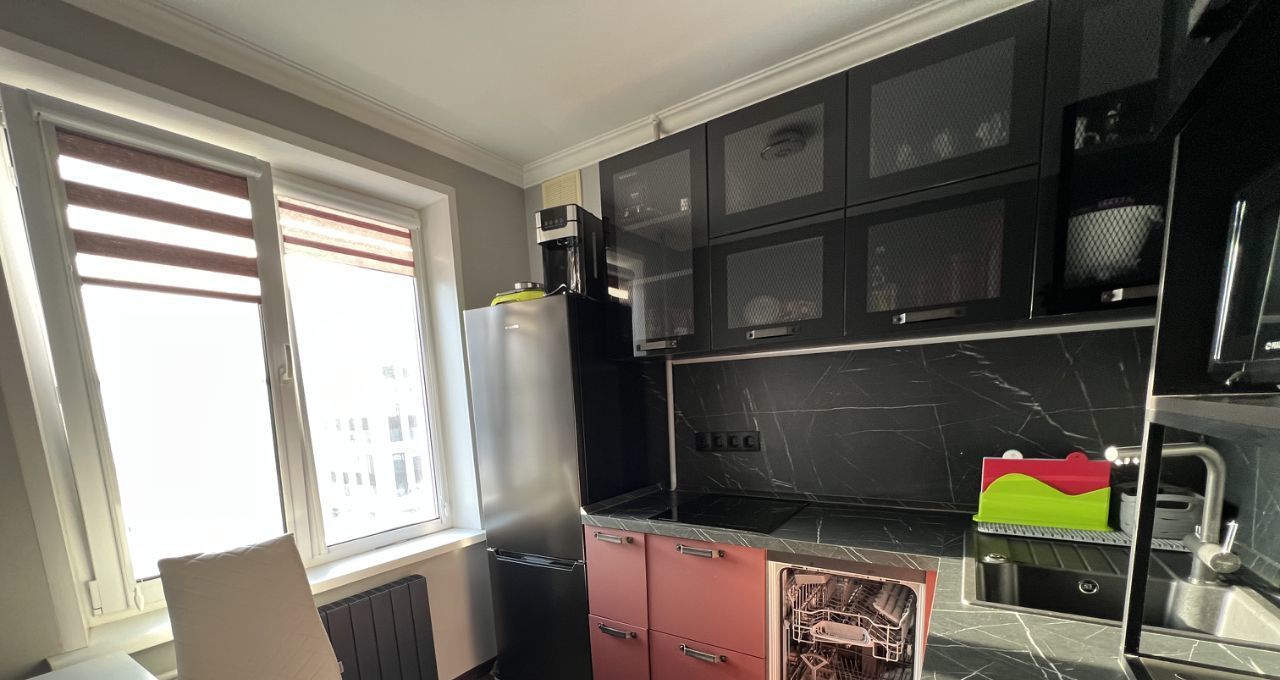 Кухонный гарнитур оснащен всей необходимой бытовой техникой: стиральная машина автомат, холодильник, посудомоечная машина, микроволновая печь,