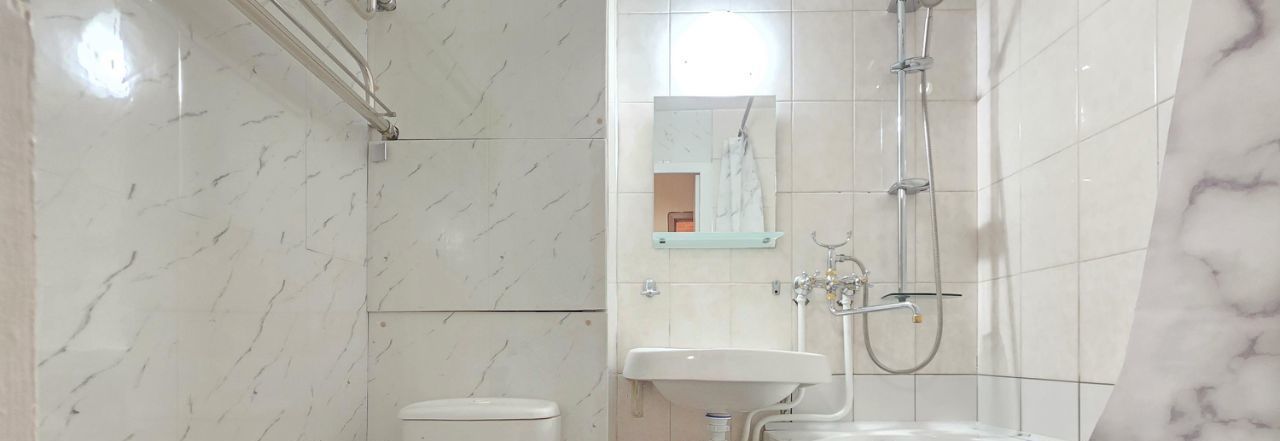Квартира с косметическим ремонтом, готова к проживанию. В квартире есть вся необходимая мебель и техника: кондиционер, холодильник, телевизор и стиральная машина. Санузел совмещенный, есть ванна. Большой остекленный балкон.