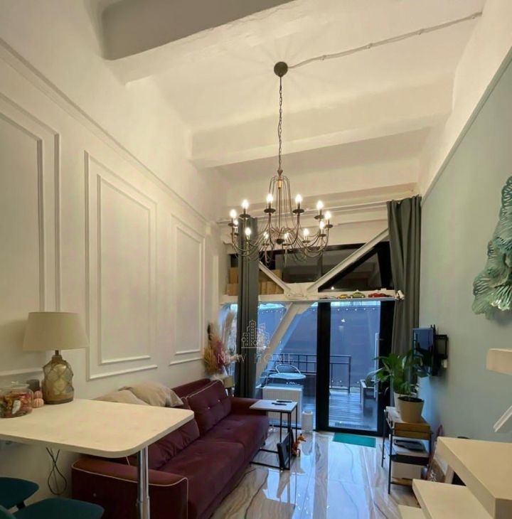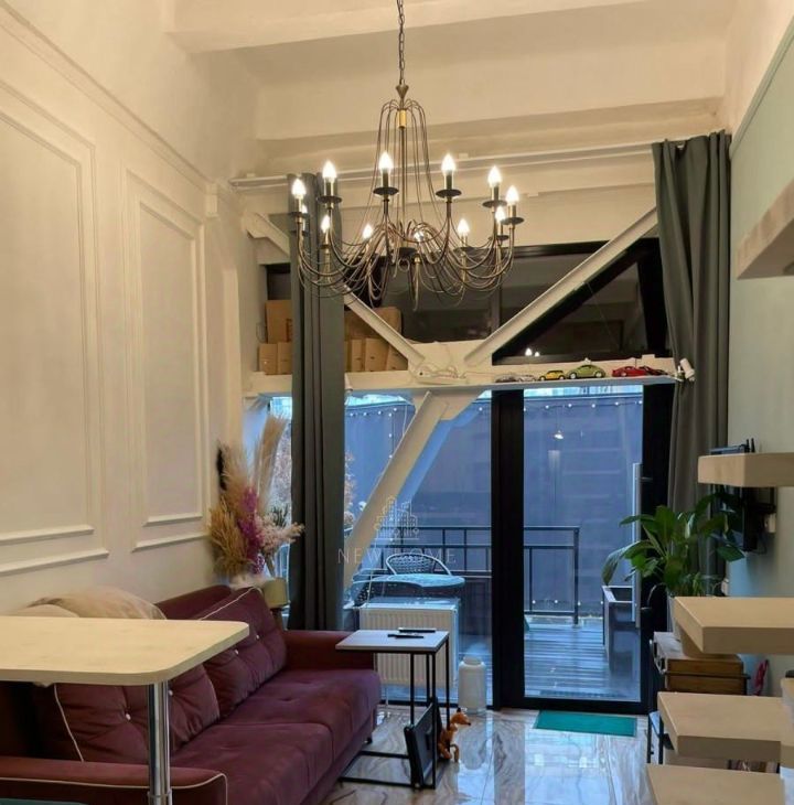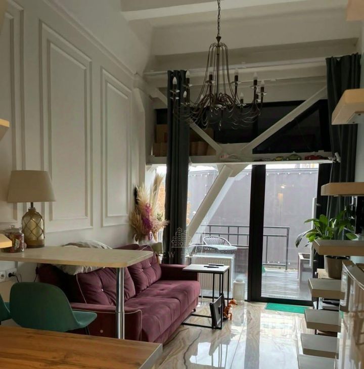 Сдаю светлые, двухуровневые стильные апартаменты: стиль лофт. На первом этаже зона кухни и зона отдыха (15,5 м). На втором этаже минигардеробная комната, двуспальная кровать (дополнительно 9,8 метров метраж второго уровня), Уличная террасса на которой можно пить кофе 11.8 метров. Под терассой есть ниша 11,8 кв м - в которой можно разместить мангал, велосипеды, и др