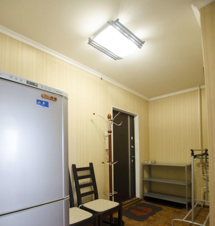 В кухне - функциональное рабочее место, оснащенное бытовой техникой, включая духовую печь и варочную панель под единой столешницей, вытяжку, двухкамерный холодильник, чайник.