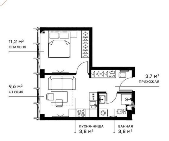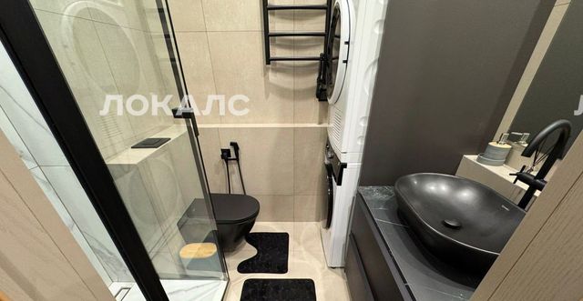 В квартире есть все необходимое для комфортного проживания: современная мебель, как на кухне, так и в комнате, а также необходимая бытовая техника — холодильник и стиральная машина, сушка, посудомойка. Два встроенных шкафа, тумбы. Два телевизора. Теплые полы Планировка продумана до мелочей, поэтому каждый квадратный метр используется максимально эффективно. Санузел совмещённый и оформлен в современном черном стиле.
