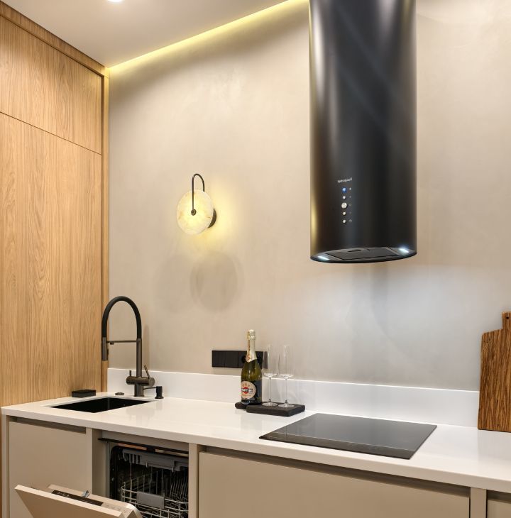 Панорамные окна в пол! Пол с подогревом! Посуда, духовка с СВЧ, посудомойка с авт. откр., водонагреватель на случай отключения горячей воды, стиральная + сушильная машина, телевизор, фильтры для воды, измельчитель, датчики протечек и т.д