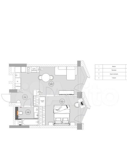 • удобный раскладывающийся диван, обеденная и рабочая зона, телевизор в гостиной;