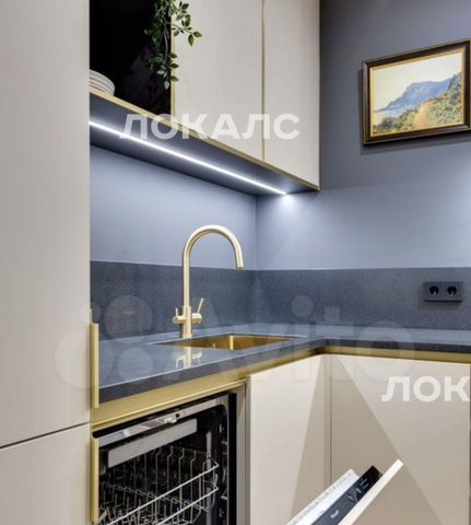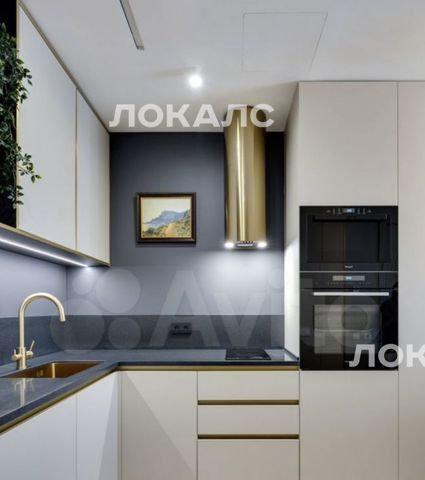• встpоенная кухня с посудомоечной машиной, духовым шкафом, микроволновкой, варочной панелью, вытяжкой, встроенным холодильником;
